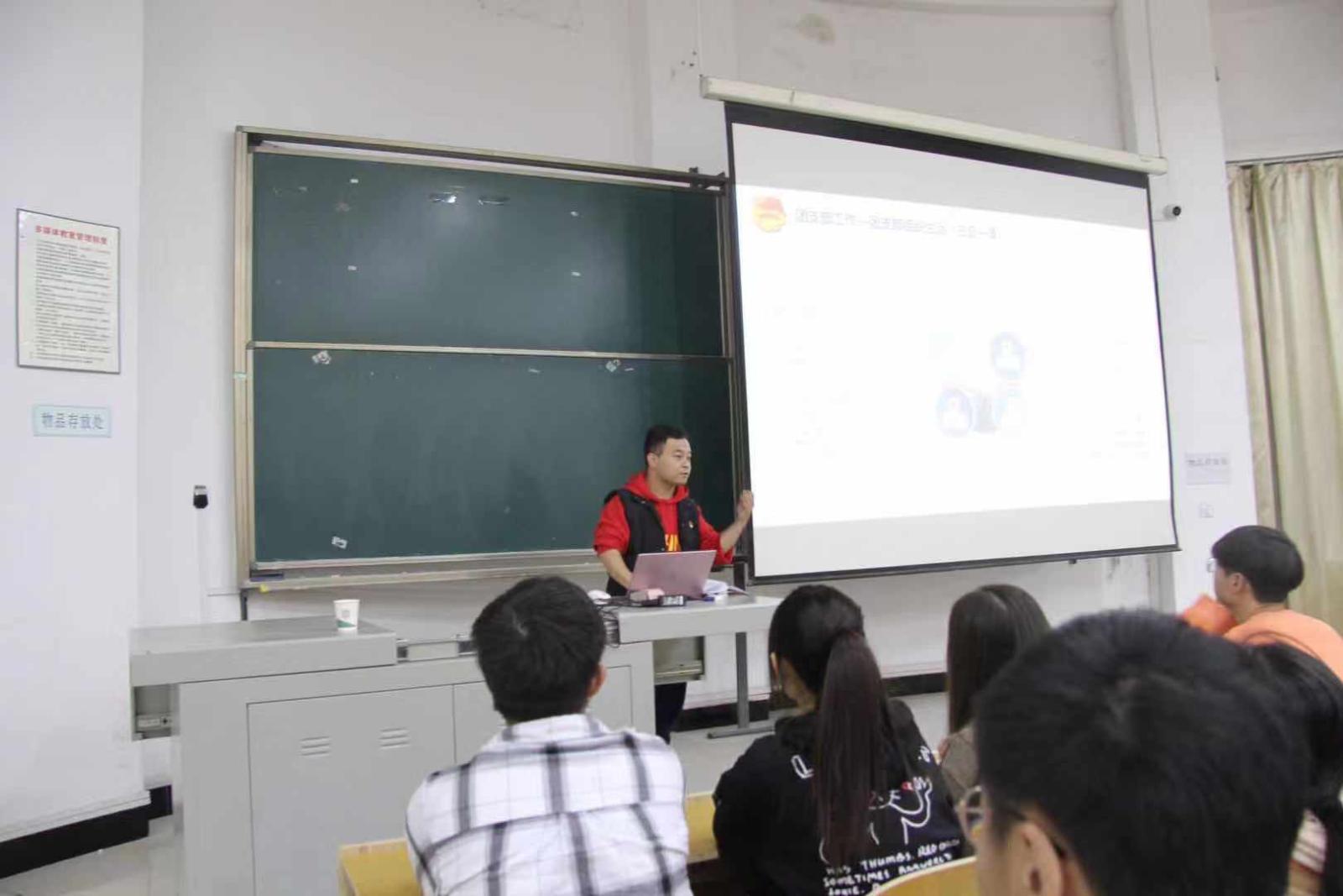 2019年11月20日下午6时00分,yl7703永利集团在3201教室开展了最后一次团课培训,今天由新闻传播学院、yl7703永利集团学生科科长王龙老师作为讲师,以“舞动青春,放飞梦想”为主题,为我们讲述中国共青团的历史和传统,让我们了解中国共青团的发展历程。