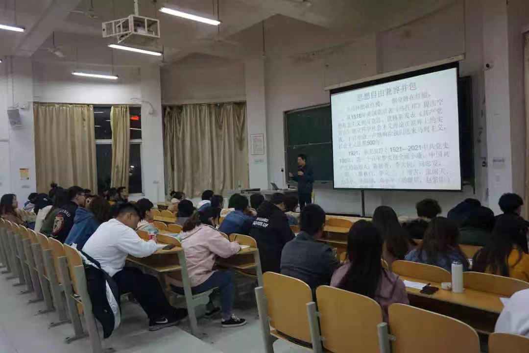 甘老师以培养青年干部的领导力为中心,用中共党史(1921-2021 风风雨雨改天换地的100年)为素材向我们讲述中国共产党的光荣历史和不怕牺牲的精神。他表示青年时期是一个可塑性很强的时期,具有许多潜能,通过团课的学习,青年一代对党的认识渐渐从朦胧走向清晰,从而成为一名合格的团员及一名合格的党员.。毛主席曾经说过:“世界是你们的,也是我们的,但归根结底是你们的,你们年轻人朝气蓬勃,好像早晨八、九点钟的太阳。希望寄托在你们身上。”未来将是知识青年充分发挥创造力和聪明才智的时代,于是我们应留下我们报效祖国,报效党和人民的期望刻苦学习的身影,留下“先天下之忧而忧,后天下之乐而乐的无私奉献精神。