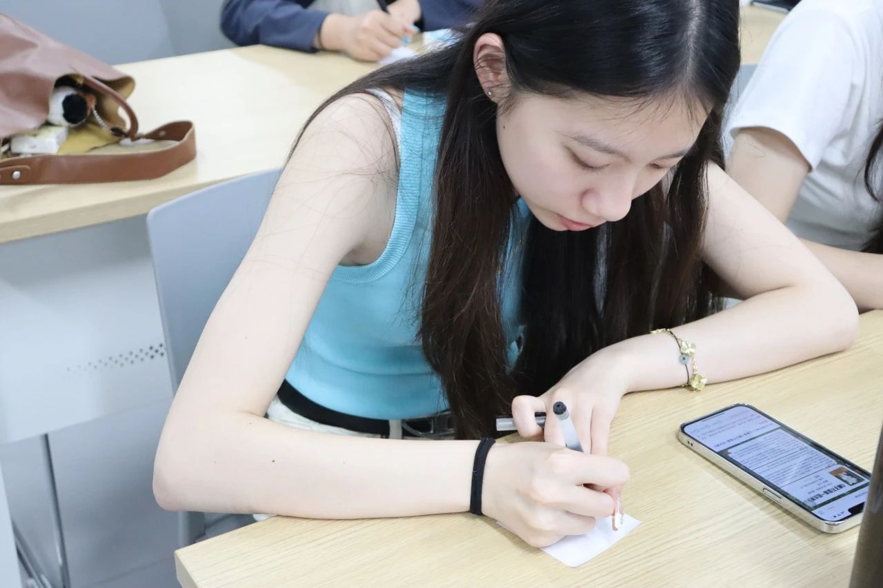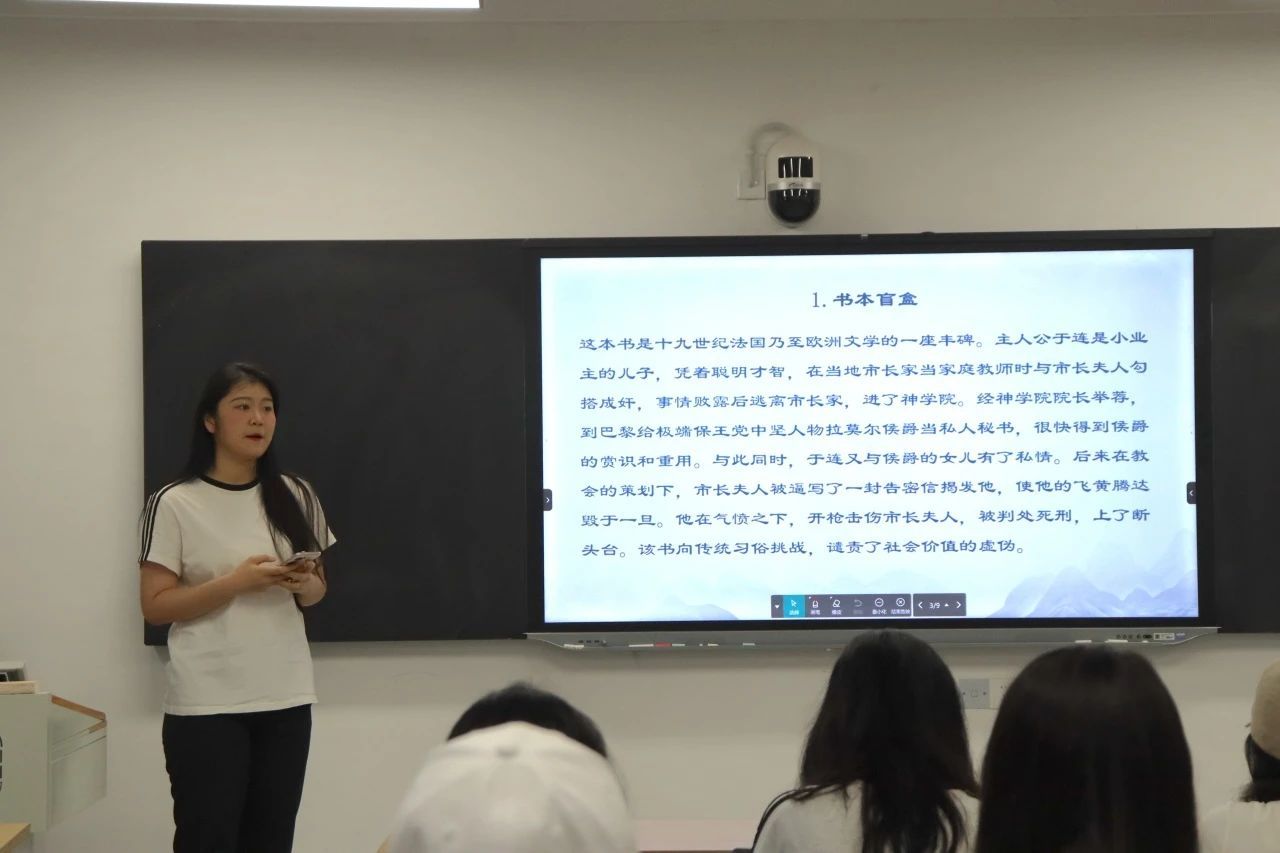本次活动分为盲盒猜书、摘抄分享、互换好书推荐卡三个环节,把《红与黑》、《呼啸山庄》、《巴黎圣母院》等诸多经典书籍带到现场,同学们积极分享自己摘抄的内容,并将自己喜爱的书籍名称写在纸上向他人推荐,让在座的所有人都收获颇丰。