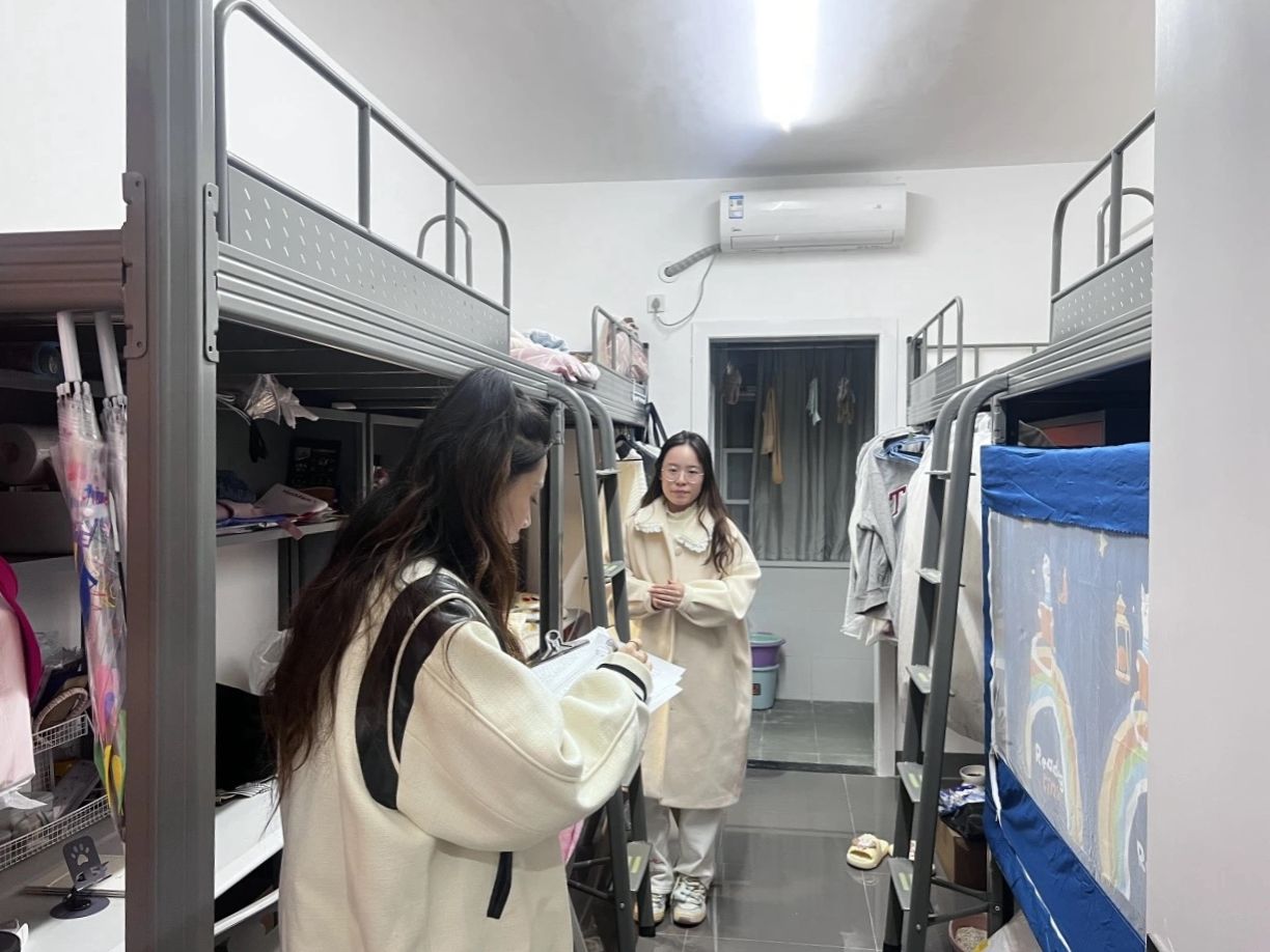 本次检查的重点依然是宿舍卫生状况以及安全隐患问题。在查寝过程中,各检查小组认真负责地对每一间宿舍进行了全面细致的检查。针对宿舍卫生情况,检查地面是否干净整洁、物品摆放是否会影响安全逃生通道等。对于卫生状况不符合标准的宿舍,检查小组当场提出,并提供了具体的改进建议。