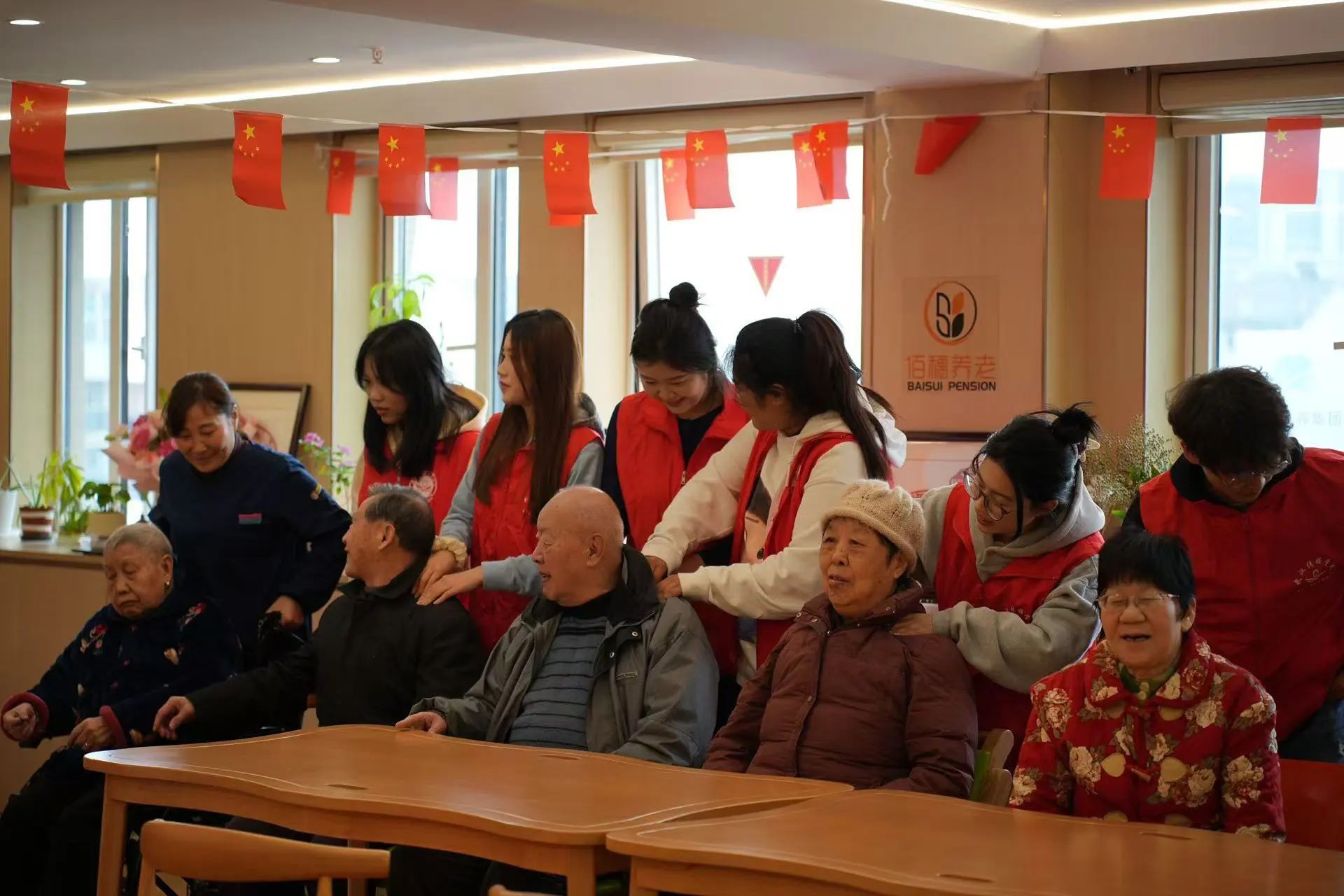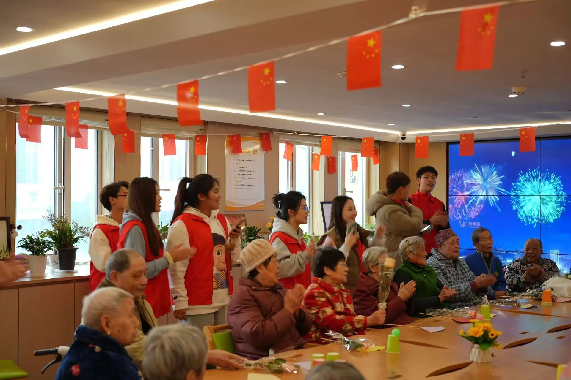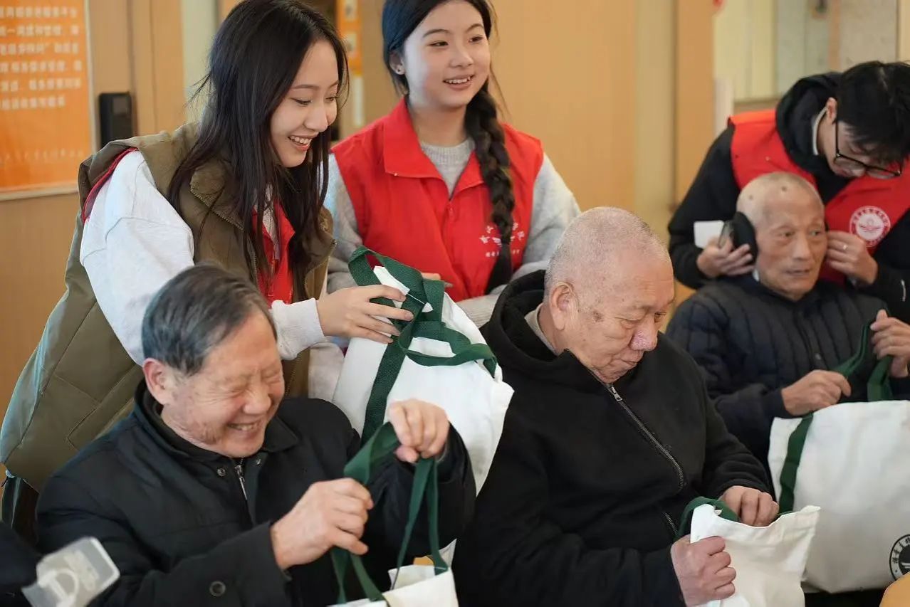 随后,志愿者为爷爷奶奶们送上精心准备的礼物,这些礼物凝聚了敬重与情意,寄托对长者福寿康宁、笑口常开的诚挚祈愿。爷爷奶奶们满心欢喜地接过,脸上洋溢着感动与欣慰,他们与同学们相互拥抱,这一刻,岁月的沟壑被爱填平,时光都变得温柔起来。