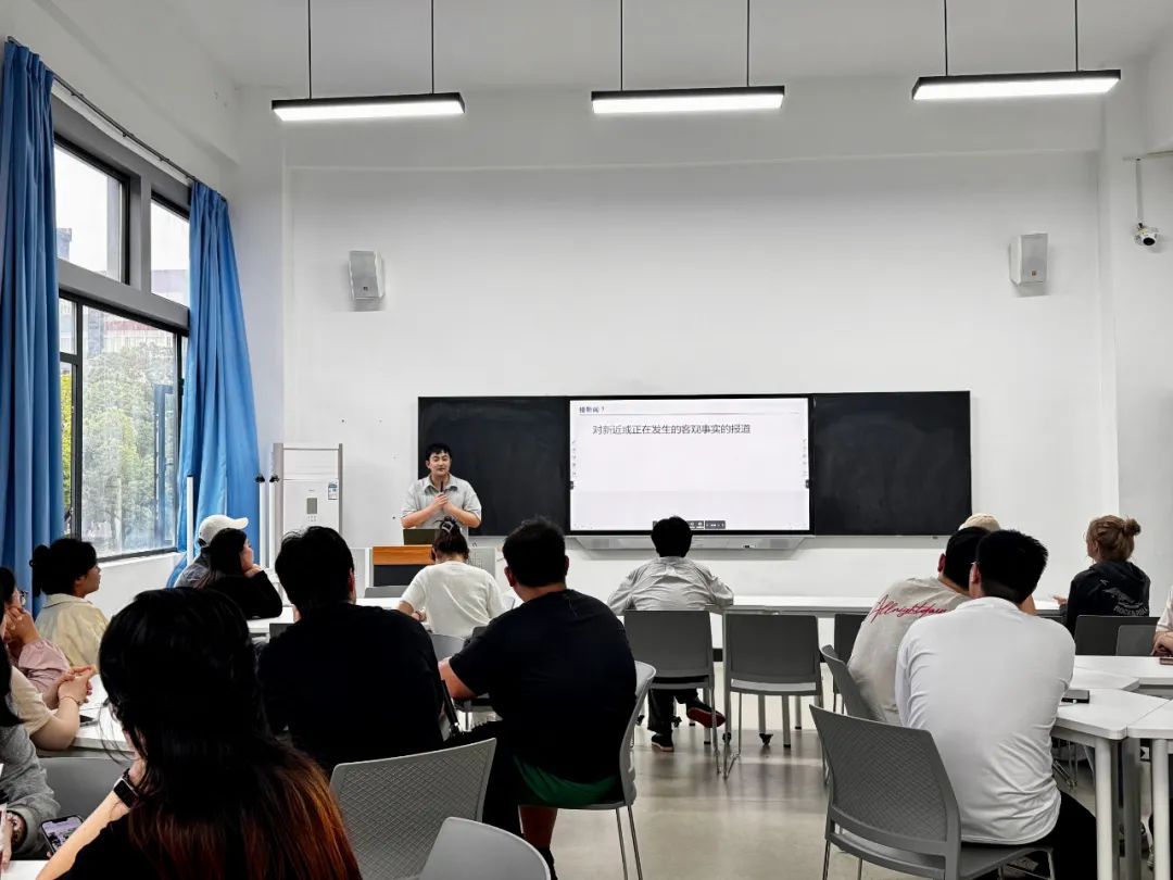 讲座中,江老师详细解析了精准定位稿件“新闻眼”的核心方法,系统讲解了如何运用停连、重音等技巧提升新闻传达力。通过典型案例分析,他将专业理论与实操相结合,在师生互动环节中,同学们积极参与模拟播报,江老师结合知识点内容对同学们的表达进行解析