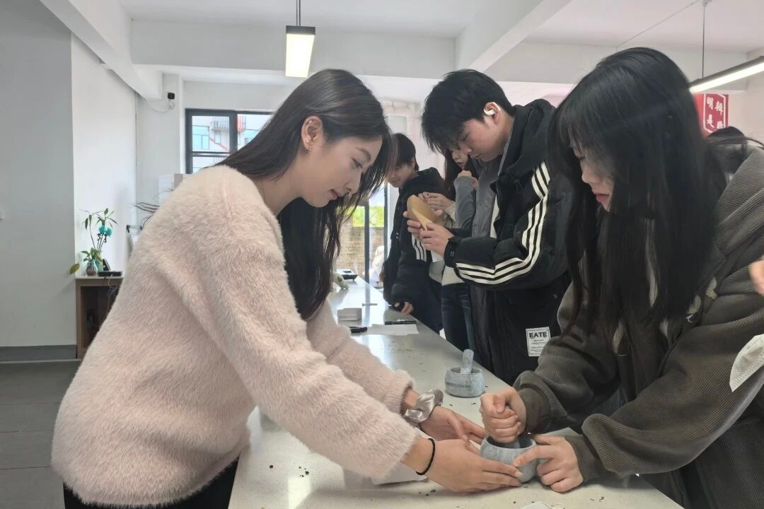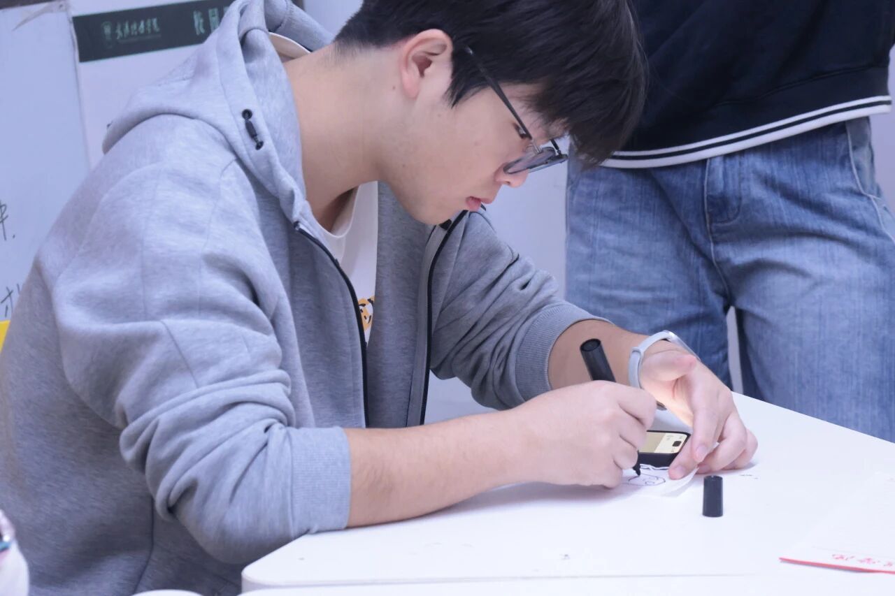 随着讲解结束,香囊DIY环节正式开启。同学们将艾草、茱萸等填充物有序搭配使用。在制作过程中,同学们还发挥自己的创意,对香囊的外观进行了独特的设计,在无纺布上绘出可爱的图案,每一个小小的香囊都包含着重阳佳节的祝福——这些亲手制作的香囊,不再是冰冷的物件,而是有温度、有故事的文化载体。