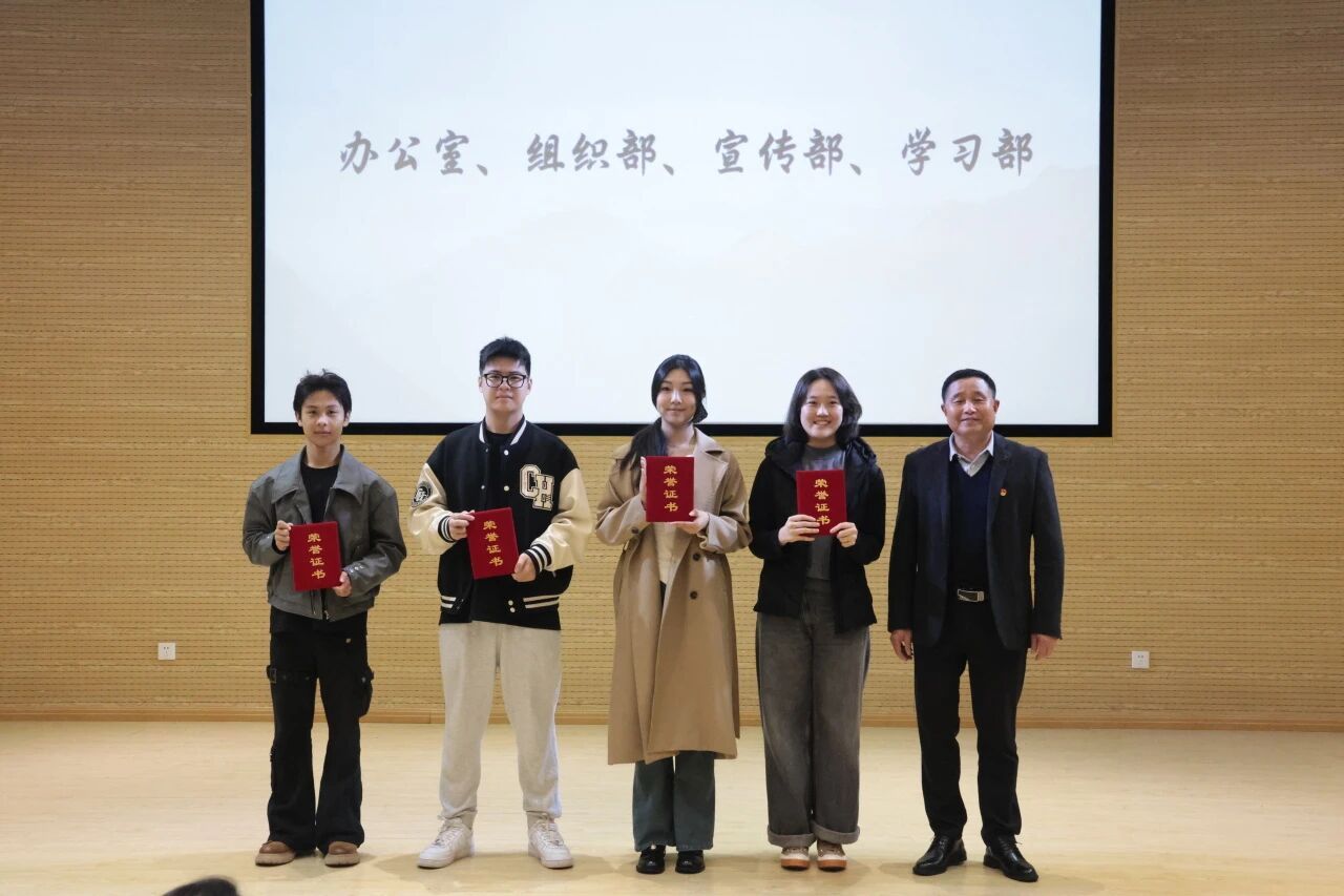 2025年11月6日,yl7703永利集团表彰大会暨第十四届团委、学生会干部聘书颁发大会于圆形报告厅隆重举行。yl7703永利集团党总支书记张爱军,学生科科长费燕琴,团委书记李思思,组织员倪君,辅导员郭子兰、王巧、易巧玲、童雅棋、戚宇凡出席本次大会。