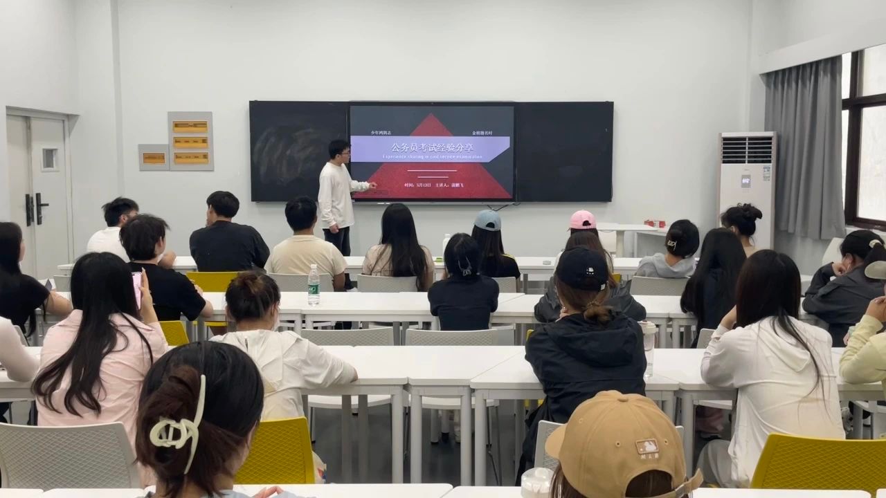 活动伊始,蒲鹏飞学长便把自己的成功经验分享给了在座的同学们,缓解了在坐同学们对于考公紧张的心情,他为大家阐述了考公的意义以及如何正确看待公务员考试,随后他将考试的流程、笔试的考题类型和面试的注意事项等多个方面进行了细致的讲解,面对同学们提出的问题一一回复,并作出了细心、明确的解答,让同学们对考试有了更加充分的了解,能够从容地备考。