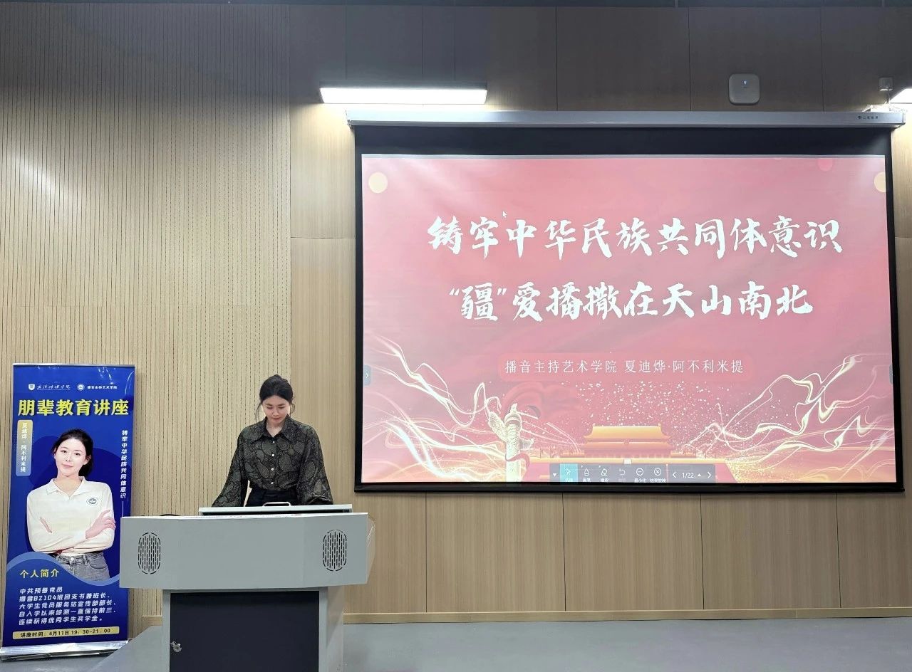 讲座期间,夏迪烨·阿不利米提同志向同学们分享了自己的学习经验和实践经验鼓励同学们认真学习,积极参加活动,充实自己的大学生活,为自己的未来积攒实战经验。同时,夏迪烨·阿不利米提作为新疆维吾尔少数民族的一份子,向我们介绍了大美新疆,带领我们了解了更多有关新疆经济的发展和自然人文的风土人情,也与同学们共同学习了铸牢中华民族共同体意识,维护民族团结统一。