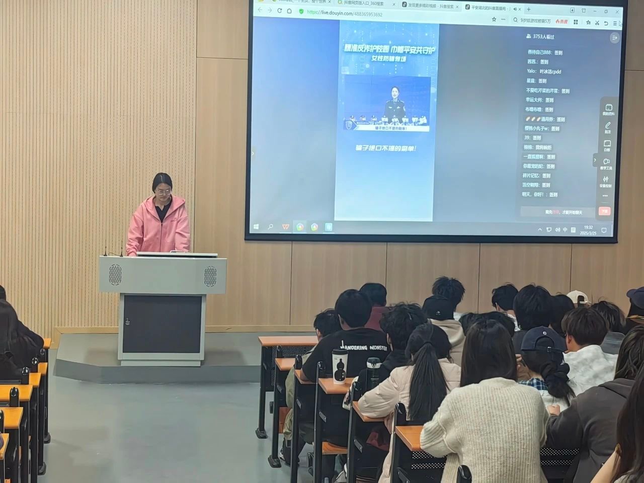 随后,董金金老师带领同学们重温 “十个凡是” 反诈要点。她结合近期发生在校园内的真实案例,对每一条反诈要点进行深入剖析,让同学们深刻认识诈骗的惯用手段和严重危害。学生代表姜力维表示,反诈骗是每个人义不容辞的责任,大家应携手共进,筑牢校园反诈防线,让诈骗分子无缝可钻。