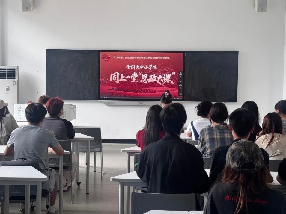 课堂上,授课老师通过珍贵的历史影像、生动的英雄事迹,带领大家重温了抗日战争时期中国人民不畏强暴、浴血奋战的壮阔历程,深刻解读了“天下兴亡、匹夫有责的爱国情怀,视死如归、宁为玉碎的民族气节,不畏强暴、血战到底的英雄气概和百折不挠、坚韧不拔的必胜信念”的伟大抗战精神内涵。